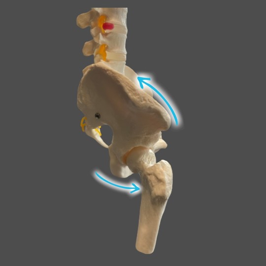 仙骨前傾(屈曲)に伴い、寛骨は後傾し、